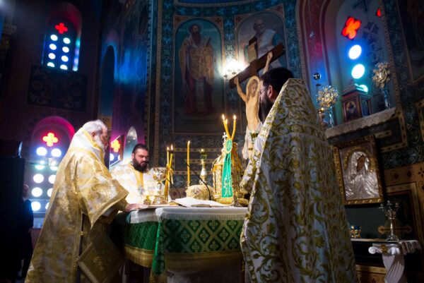 Της θείας Λειτουργίας προέστη ο Σεβ. Μητροπολίτης Γέρων Λεοντοπόλεως κ. Γαβριήλ και τον πλαισίωσαν ο Πρωτοσύγκελλος της Ιεράς Μητροπόλεως Μεσσηνίας Αρχιμ. Φίλιππος Χαμαργιάς, Προϊστάμενος του Ναού και ο έτερος εφημέριος Πρωτ. Γεώργιος Γιαννόπουλος και ο Διάκονος Βασίλειος Κουτσόγιαννης, ενώ το αναλόγιο πλαισίωσε ο χορός του Ναού, υπό τη διεύθυνση του κ. Κων/νου Κληρόπουλου.