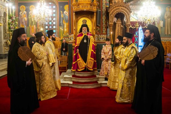 Κατά τον Όρθρο και την πολυαρχιερατική Θεία Λειτουργία προεξήρχε ο εορτάζων Μητροπολίτης Μεσσηνίας κ. Χρυσόστομος, συλλειτουργούντων των Σεβ. Μητροπολιτών Δημητριάδος κ. Ιγνατίου, Πειραιώς κ. Σεραφείμ, Κοζάνης κ. Παύλου, Άρτης κ. Καλλινίκου, Ιλίου κ. Αθηναγόρου, Κηφισίας κ. Κυρίλλου, Θεσσαλιώτιδος κ. Τιμοθέου, Μεγάρων κ. Κωνσταντίνου, Καρθαγένης κ. Μελετίου, Πολυανής κ. Βαρθολομαίου, Θήρας κ. Αμφιλοχίου, Αιτωλίας κ. Δαμασκηνού, Ζηνουπόλεως κ. Ιακώβου και του Θεοφιλ. Επισκόπου Αμφιπόλεως κ. Χριστοφόρου.