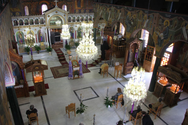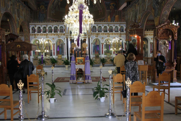 Πιστοί προσήλθαν στον Ιερό Ναό τηρουμένων των υγειονομικών μέτρων, προκειμένου να προσκυνήσουν την Εικόνα του Νυμφίου Χριστού και να ακούσουν τα κατανυκτικά άσματα του ψαλτηρίου.
