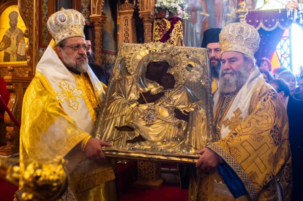 Εν συνεχεία εψάλη ο Μικρός Παρακλητικός Κανόνας της Θεοτόκου και κατά την ώρα που οι χοροί των ιεροψαλτών έψαλαν το Μεγαλυνάριον της Πολιούχου της Καλαμάτας “Δεύτε την εικόνα Υπαπαντής…” με ρίγη συγκινήσεως οι Σεβασμιώτατοι Μάνης και Μεσσηνίας μετέφεραν την Ιερά Εικόνα της Παναγίας από τον θρόνο της λιτάνευσης στον μόνιμο Θρόνο Της.