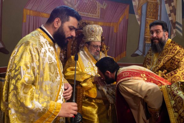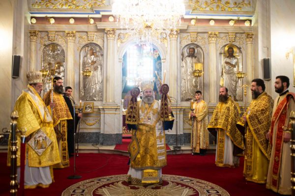 Στην ακολουθία του Όρθρου χοροστάτησε ο Σεβ. Μητροπολίτης Μάνης κ. Χρυσόστομος, προσκληθείς υπό του οικείου ποιμενάρχου Σεβ. Μητροπολίτου Μεσσηνίας κ. Χρυσοστόμου συλλειτουργούντων αμφοτέρων των Αρχιερέων και πλαισιωμένων υπό του Πρωτοσυγκέλλου της Ιεράς Μητροπόλεως Μεσσηνίας Αρχιμ. Φιλίππου Χαμαργιά , των εφημερίων του Ιερού Μητροπολιτικού Ναού της Υπαπαντής, Πρωτοπρεσβυτέρων Κρεσφόντου Πουλοπούλου και Σωτηρίου Τζαϊλέα και των Διακόνων Θεοφίλου Κυριάκου και Νικολάου Τζώρτζη. Κατά την διάρκεια της Θείας Λειτουργίας ο Σεβ. Μεσσηνίας τέλεσε και την εις πρεσβύτερον χειροτονία του Διακόνου Τζώρτζη.