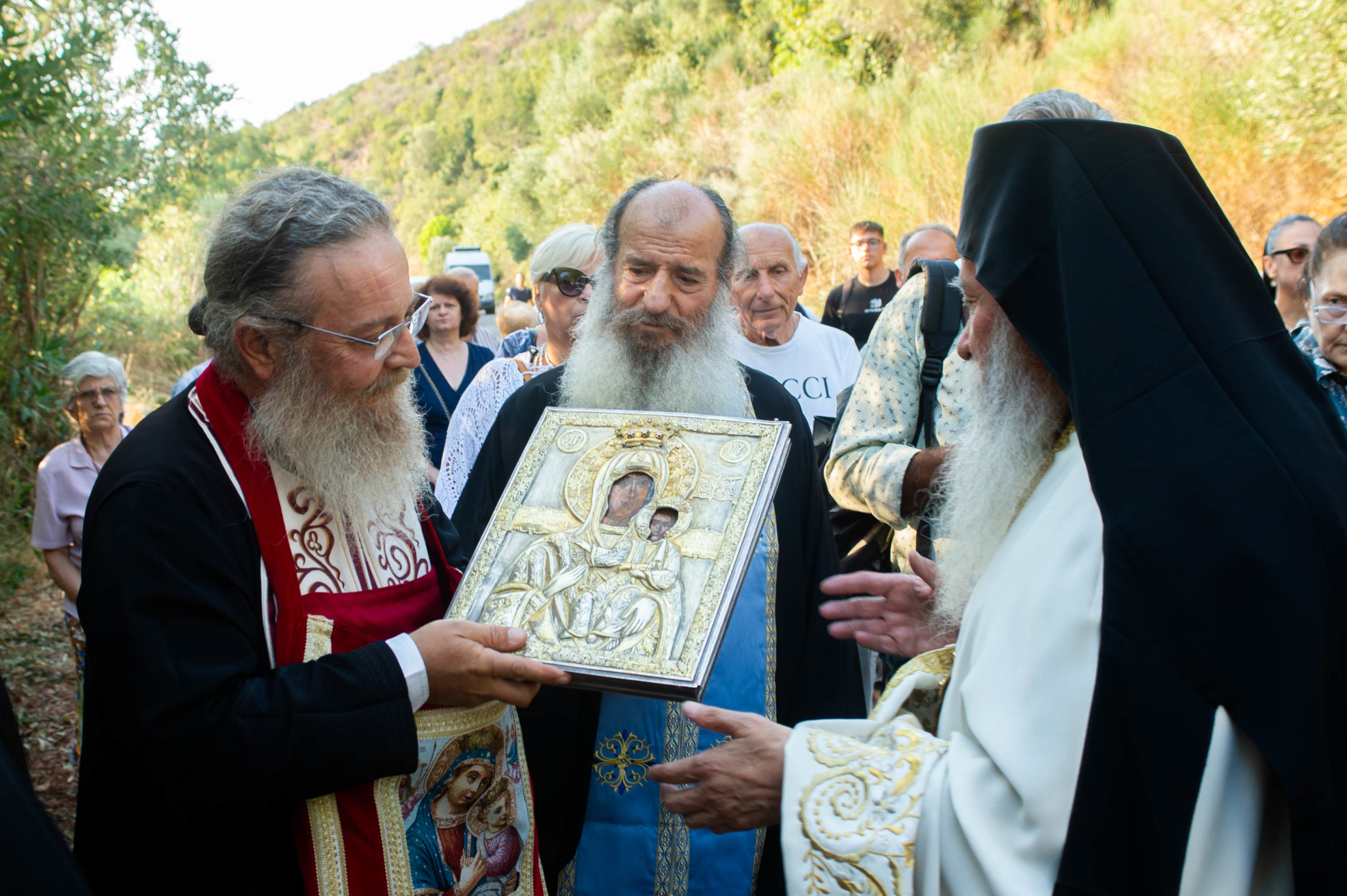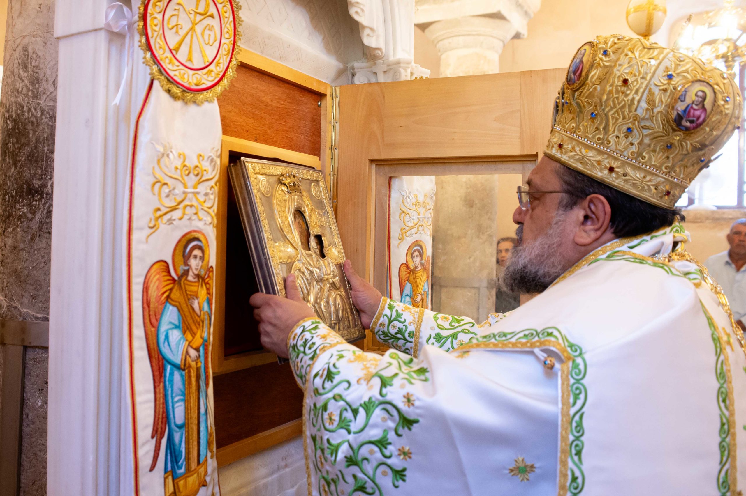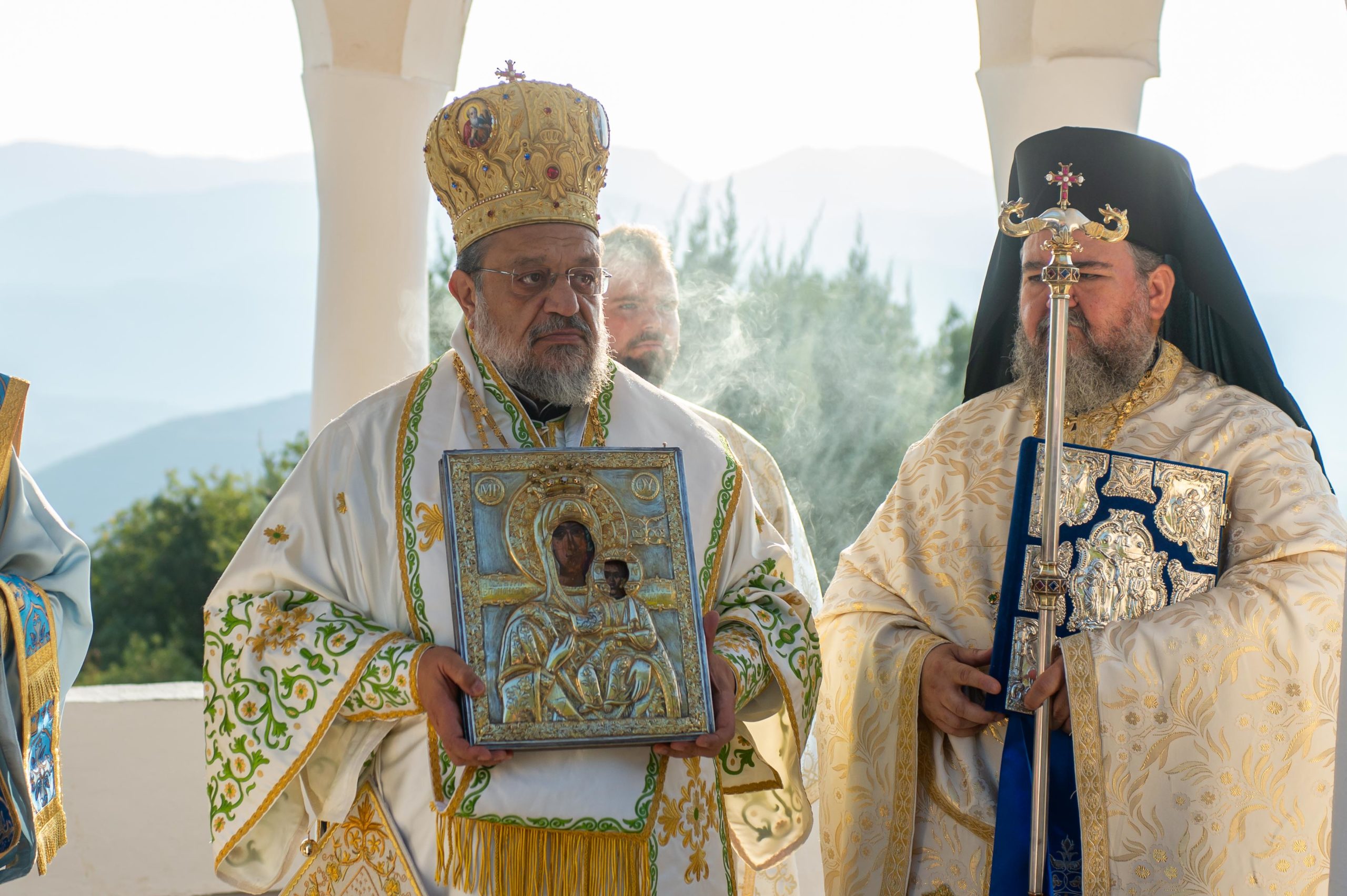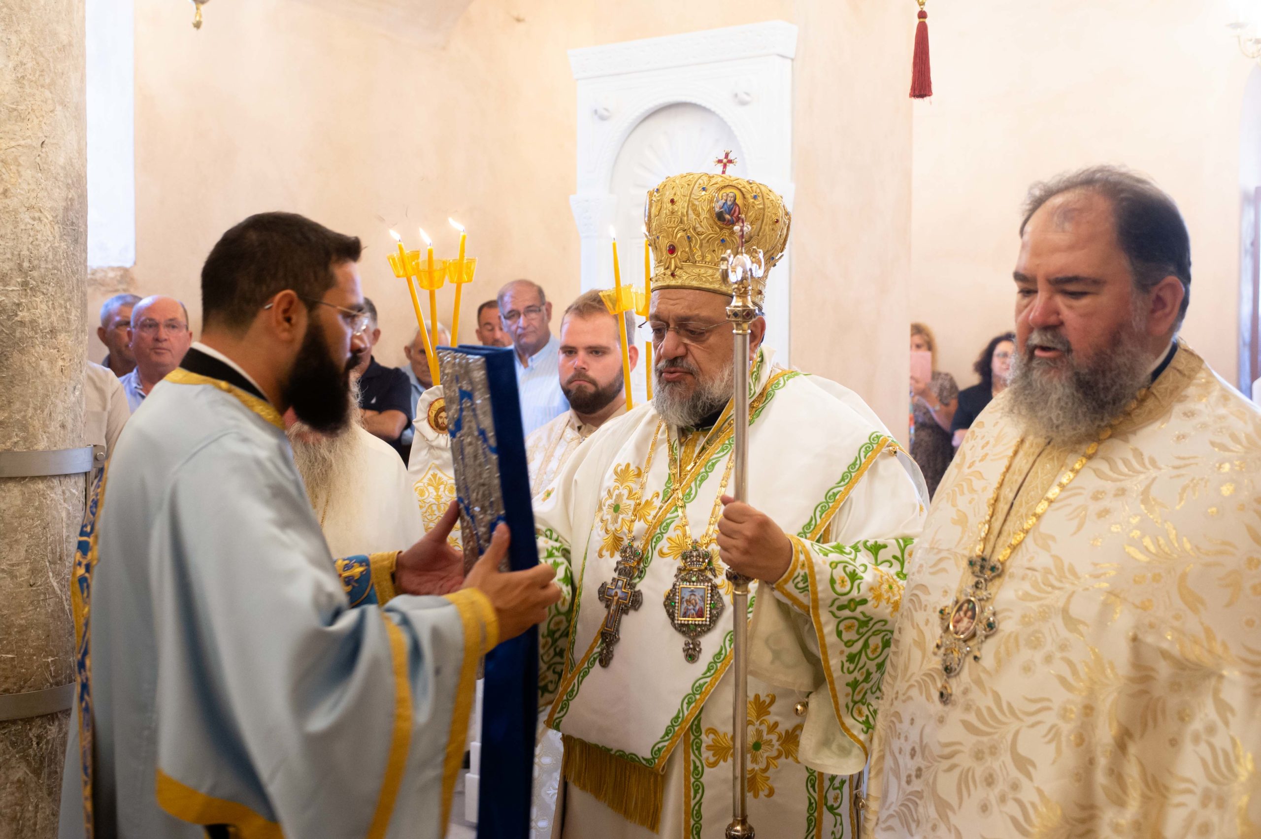 Προ του πέρατος της Θείας Λειτουργίας ο Σεβασμιώτατος ευχήθηκε σε όλους η Υπεραγία Θεοτόκος να είναι σκέπη, προστάτης και φωτεινός φάρος στη ζωή μας.