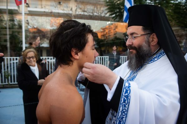 Ο π. Φίλιππος ευχήθηκε στα παιδιά που βούτηξαν για να ανασύρουν τον Τίμιο Σταυρό να έχουν υγεία, πρόοδο και κάθε καλό στη ζωή τους.