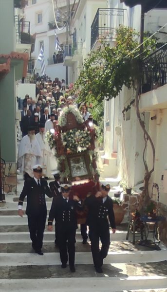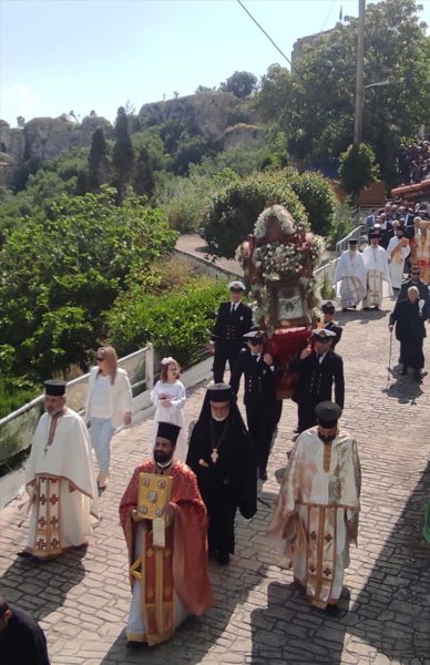 Στη συνέχεια πραγματοποιήθηκε πάνδημη λιτάνευση της θαυματουργού εικόνος της Παναγίας, στα γραφικά σοκάκια της ιστορικής Κωμοπόλεως, με τη συμμετοχή πλήθους πιστών.