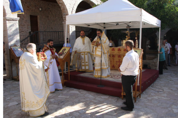 Κατά τον όρθρο και την πανηγυρική Θεία Λειτουργία προεξήρχε ο Σεβ. Μητροπολίτης Μεσσηνίας κ. Χρυσόστομος, πλαισιούμενος από τον Καθηγούμενο Αρχιμ. Προκόπιο Σμυρνή, τον Αρχιμ. Αλέξιο Σαραντόπουλο και το Διάκονο Θεόφιλο Κυριάκο.