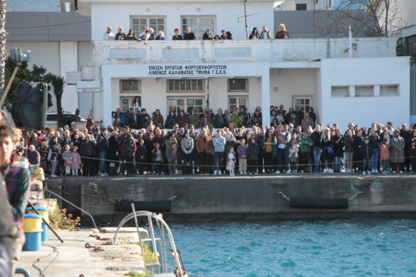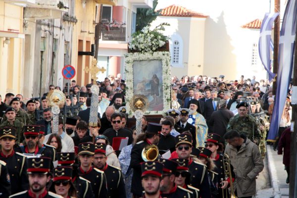 Τιμές απέδωσαν στρατιωτικό άγημα του 9ου Σ.Π. και η φιλαρμονική του Δήμου Καλαμάτας, ενώ την Εικόνα της Βαπτίσεως του Χριστού έφεραν επ’ ώμοις, άνδρες του Λιμενικού Σώματος.