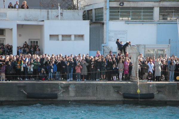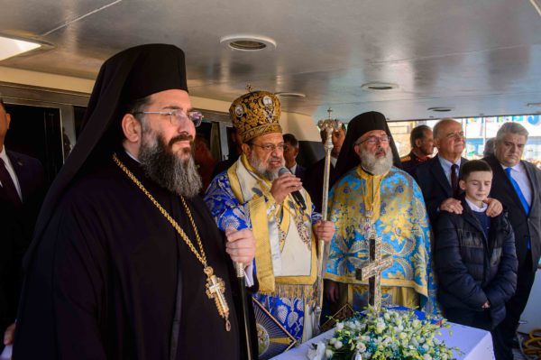 Ακολούθησε η τέλεση του Μεγάλου Αγιασμού και στη συνέχεια έλαβε χώρα η τελετή κατάδυσης του Τιμίου Σταυρού και ο αγιασμός των υδάτων στο λιμάνι της πόλεως.