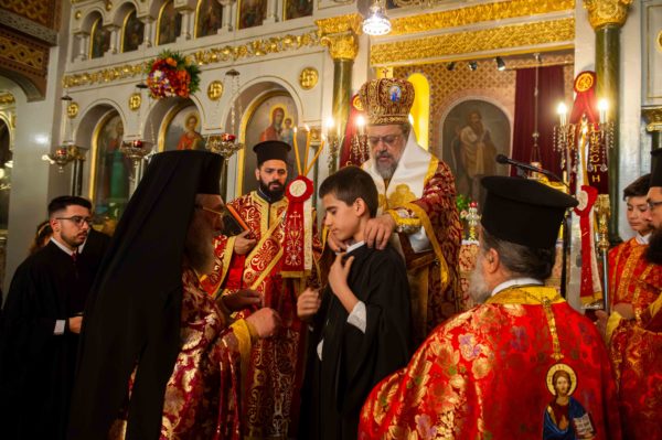 Με το πέρας της Θείας Λειτουργίας ο κ. Χρυσόστομος χειροθέτησε σε Αναγνώστη τον ευσεβή νέο Βασίλειο Χαραλαμπόπουλο, ο οποίος διακονεί στον Ιερό Ναό.