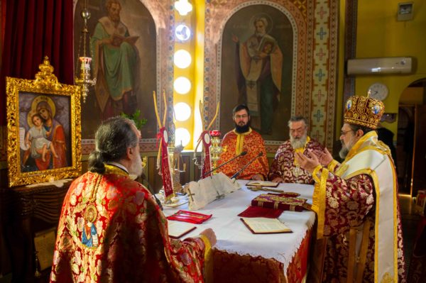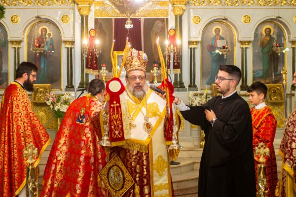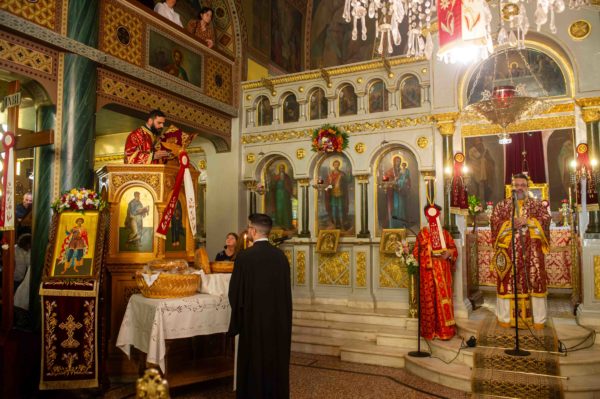 Του Όρθρου και της πανηγυρικής Θείας Λειτουργίας προέστη ο Σεβασμιώτατος Μητροπολίτης Μεσσηνίας κ. Χρυσόστομος, πλαισιωμένος από τον Προϊστάμενο του Ναού Αρχιμ. Χριστοφόρο Νταμάτη, τους συνεφημερίους Πρωτοπρ. Ξενοφώντα Γαλανόπουλο και Οικον. Αντώνιο Μανουσόπουλο, καθώς και τον Διάκ. Θεόφιλο Κυριάκο.