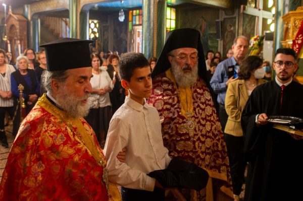 Με το πέρας της Θείας Λειτουργίας ο κ. Χρυσόστομος χειροθέτησε σε Αναγνώστη τον ευσεβή νέο Βασίλειο Χαραλαμπόπουλο, ο οποίος διακονεί στον Ιερό Ναό.