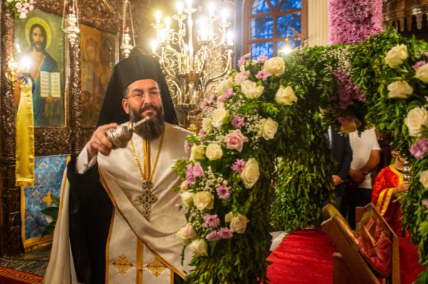 Τέλος, ευχαρίστησε τους παρευρισκομένους άρχοντες και συνεχάρη τον εφημέριο της ενορίας π. Γεώργιο Κωνσταντόπουλο για την άψογη διοργάνωση της πανηγύρεως.