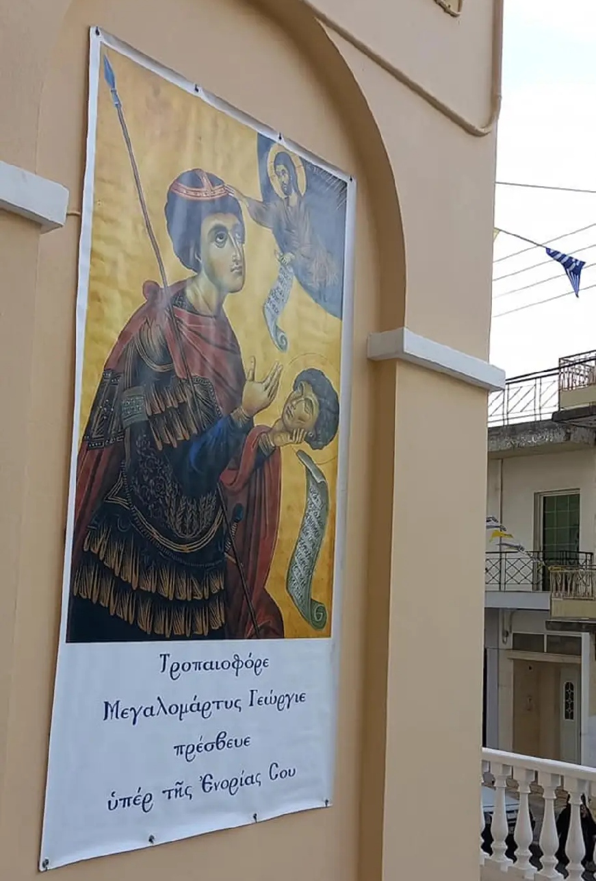 Στον πανηγυρίζοντα Ενοριακό Ιερό Ναό του Αγίου Γεωργίου της πόλης της Καλαμάτας, προέστη του πανηγυρικού εσπερινού ο Πρωτοσύγκελλος της Ιεράς Μητροπόλεως Μεσσηνίας Αρχιμ. Φίλιππος Χαμαργιάς πλαισιωμένος από κληρικούς της πόλης. Ο π. Φίλιππος κατά το κήρυγμα του προέτρεψε τους πιστούς να αποτελεί ο Άγιος Γεώργιος παράδειγμα και οδηγός της ζωής τους και να λάμπουν τα έργα τους ως “αδάμαντες”, καθώς η Εκκλησία μας προβάλλει τον Άγιο Γεώργιο ως “Τον νοερόν της καρτερίας αδάμαντα”.