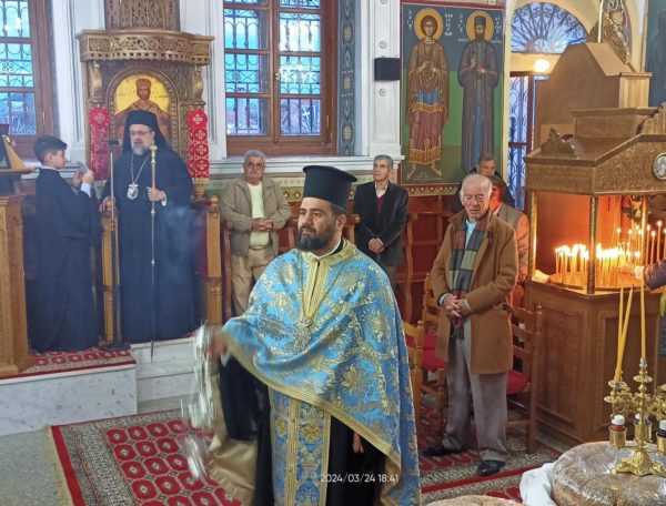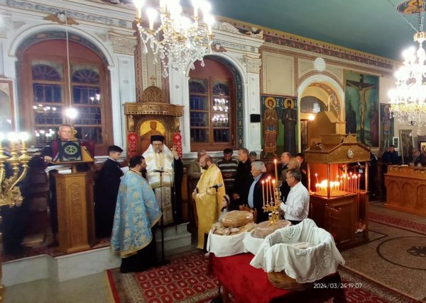 Τον Σεβασμιώτατο πλαισίωσαν ο Πρωτοπρεσβύτερος Αθανάσιος Σιψάς και ο εφημέριος του ναού Οικονόμος Κυριάκος Μπακολέας.
