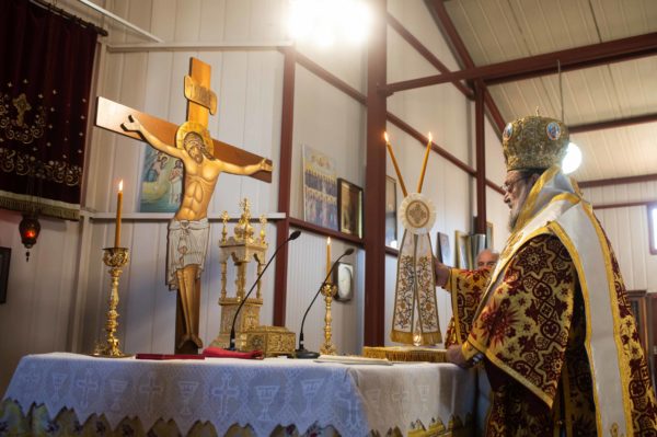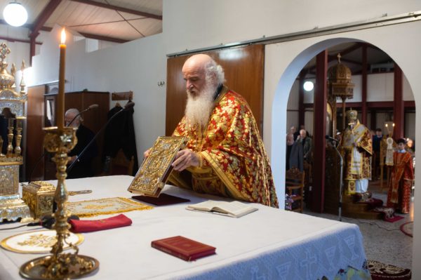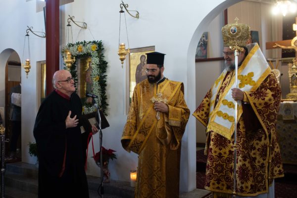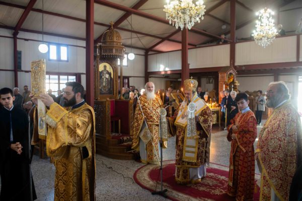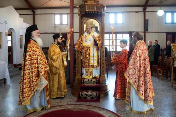 Τον Σεβασμιώτατο πλαισίωσαν οι εφημέριοι του ναού, Αρχιμανδρίτης Ευθύμιος Θεοδωρόπουλος και Πρωτοπρ. Παναγιώτης Χριστόπουλος και ο Διάκονος Θεόφιλος Κυριάκος.
