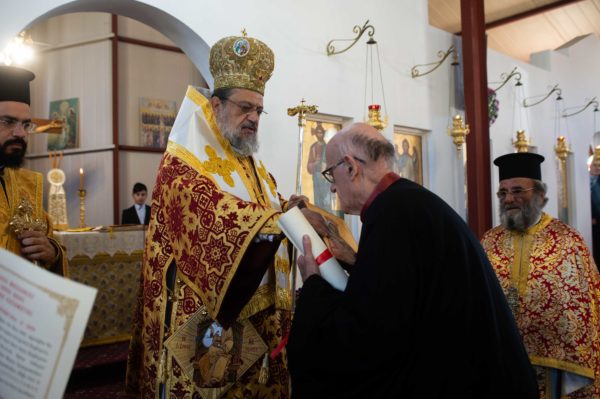 Προ του πέρατος της Θείας Λειτουργίας, τελέσθηκε το καθιερωμένο Κτητορικό Μνημόσυνο εις μνήμην των διατελεσάντων εφημερίων, εκκλ. επιτρόπων και ευεργετών του Ιερού Ναού, ενώ ο Σεβασμιώτατος τίμησε τον πλέον της τριακονταετίας Πρωτοψάλτη του Ιερού Ναού κ. Παναγιώτη Κανέλλη, για την ανιδιοτελή προσφορά και υπηρεσία του στο ιερό αναλόγιο.