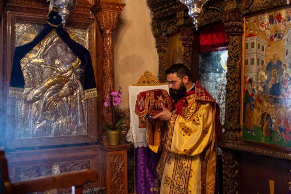 Ο Μητροπολίτης ευχήθηκε στην καθηγουμένη της Ιερά ς Μονής Mοναχή Ανθίμη και την συνοδεία της, τα προσήκοντα ενόψει του Πάσχα και προέτρεψε τις αδελφές να προσεύχονται για τον Επίσκοπο, τους Ιερείς και το ευσεβές ποίμνιο της τοπικής εκκλησίας.