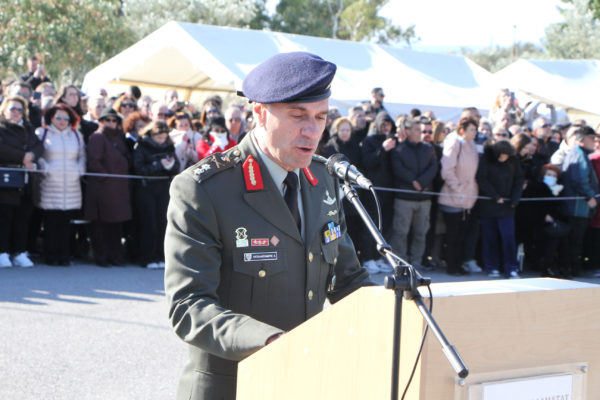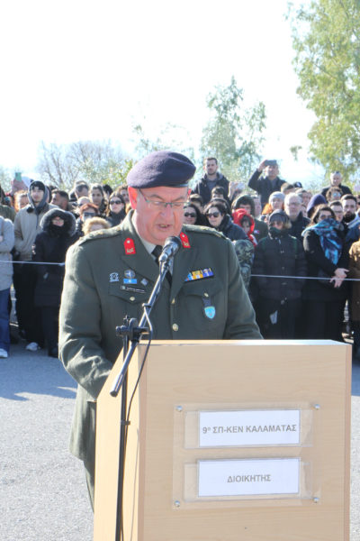 Ακολούθησε η ανάγνωση της ημερήσιας διαταγής του Διοικητή του Συντάγματος, Αντισυνταγματάρχη Δημητρίου Λιάκουρη, ενώ χαιρετισμό προς τους στρατιώτες και τους συγγενείς τους απηύθυνε ο εκπρόσωπος του Γενικού Επιτελείου Στρατού και Διοικητής της IVΜεραρχίας Πεζικού (ΔΙΚΕ) Πελοποννήσου, Υποστράτηγος Αλέξανδρος Χατζηαλεξανδρής.