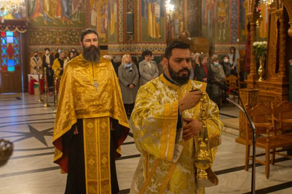Του Σεβασμιωτάτου Μητροπολίτου Μεσσηνίας κ. Χρυσοστόμου συμπροσευχομένου από του Ιερού Βήματος, τέλεσε την Ακολουθία ο Ιερατικώς Προϊστάμενος του Ναού Πρωτοπρεσβύτερος Κρεσφόντης Πουλόπουλος, μετά του Διακόνου Θεοφίλου Κυριάκου και παρισταμένων απάντων των κληρικών της πόλεως της Καλαμάτας.
