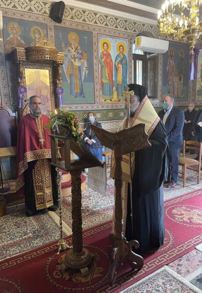 Ο Σεβασμιώτατος κατά την σύντομη προσλαλιά του αναφέρθηκε στο πρόσωπο της Υπεραγίας Θεοτόκου και στην τιμή που της αποδίδει η Εκκλησία μας μέσα από την Ακολουθία των Χαιρετισμών.