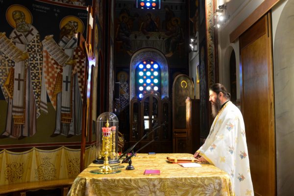 Της Θείας Λειτουργίας προέστη ο Σεβασμιώτατος Μητροπολίτης Στάρα Ζαγόρα κ. Κυπριανός, συλλειτουργούντος του Σεβασμιωτάτου Μητροπολίτου Μεσσηνίας κ. Χρυσοστόμου.
