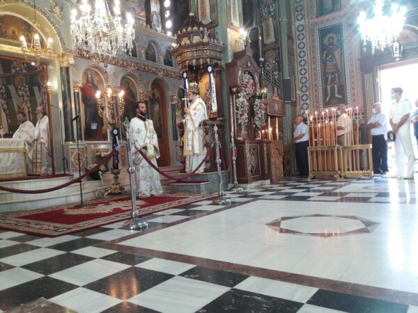 Στον Ιερό Ναό της πόλης της Καλαμάτας προέστη της Θείας Λειτουργίας ο Πρωτοσύγκελλος της Ιεράς Μητροπόλεως Μεσσηνίας Αρχιμ. Φίλιππος Χαμαργιάς, ο οποίος κήρυξε και τον θείο λόγο.
