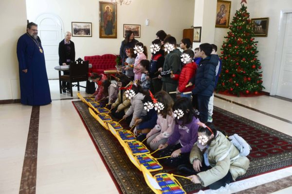 Χριστουγεννιάτικα κάλαντα και παραδοσιακά τραγούδια έψαλαν σήμερα, 22 Δεκεμβρίου, στον Μητροπολίτη Μεσσηνίας κ. Χρυσόστομο οι μαθητές του 4ου και του 17ου Δημοτικών Σχολείων Καλαμάτας, του Γυμνασίου Παραλίας Καλαμάτας, στρατιώτες του 9ου Συντάγματος Πεζικού και σμηνίτες της 120 Πτέρυγας Εκπαίδευσης Αέρος, καθώς και ομάδα νηπίων του «Παπαδοπουλείου» Παιδικού Σταθμού της Ιεράς Μητρόπολης.