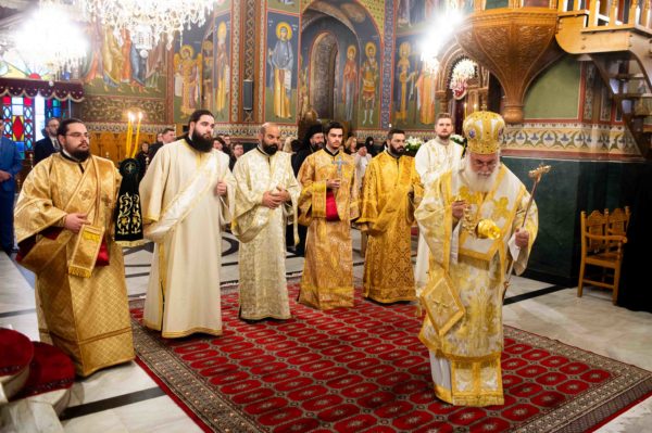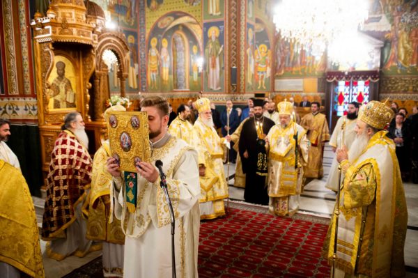 Κατά τον Όρθρο και την πολυαρχιερατική Θεία Λειτουργία προεξήρχε ο εορτάζων Μητροπολίτης Μεσσηνίας κ. Χρυσόστομος, συλλειτουργούντων των Σεβ. Μητροπολιτών Ιλίου κ. Αθηναγόρου, Κηφισίας κ. Κυρίλλου, Μεγάρων κ. Κωνσταντίνου, Σταγών κ. Θεοκλήτου και Κιλκισίου κ. Βαρθολομαίου. Συμπροσευχόμενοι παρέστησαν ο Σεβ. Γέρων Μητροπολίτης Λεοντοπόλεως κ. Γαβριήλ και ο Θεοφιλ. Επίσκοπος Αμορίου κ. Νικηφόρος.
