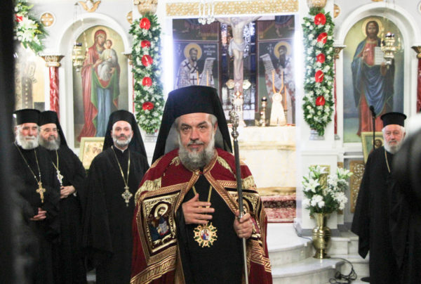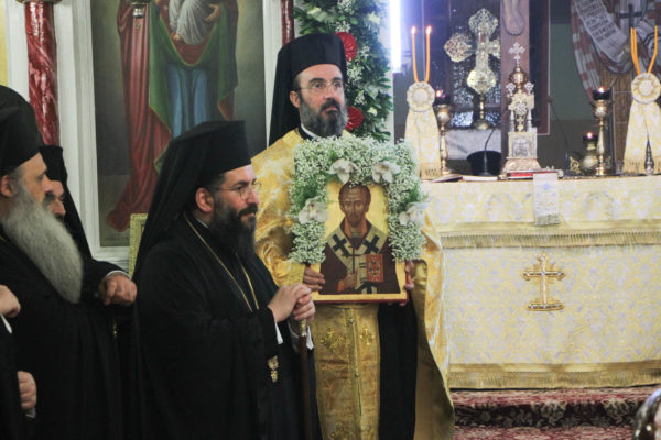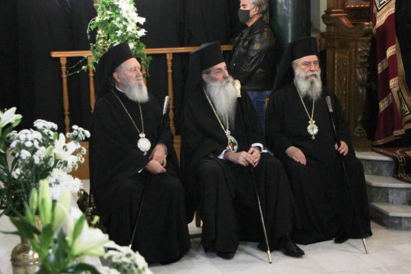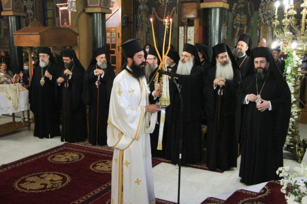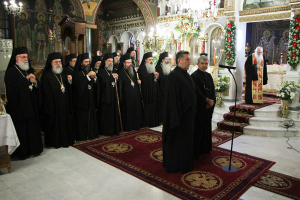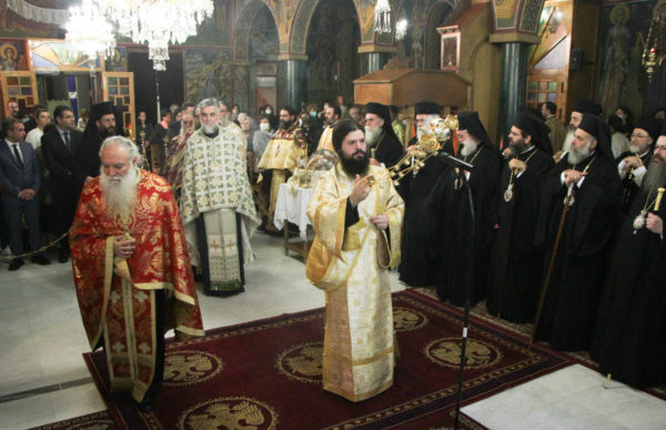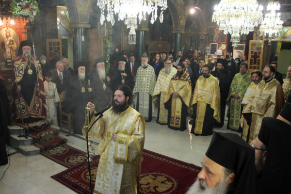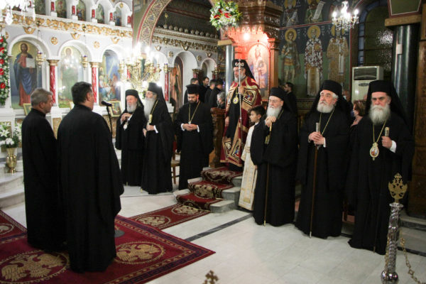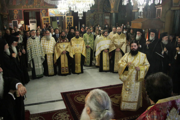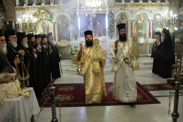 Στην Ακολουθία χοροστάτησε ο Σεβ. Μητροπολίτης Γόρτυνος κ. Νικηφόρος, συγχοροστατούντων των Σεβ. Μητροπολιτών Σπάρτης κ. Ευσταθίου, Πειραιώς κ. Σεραφείμ, Χαλκίδος κ. Χρυσοστόμου, Κορίνθου κ. Διονυσίου, Θηβών κ. Γεωργίου, Φωκίδος κ. Θεοκτίστου, Άρτης κ. Καλλινίκου, Ιλίου κ. Αθηναγόρου, Κηφισίας κ. Κυρίλλου, Μαρωνείας κ. Παντελεήμονος, Θεσσαλιώτιδος κ. Τιμοθέου, Μεγάρων κ. Κωνσταντίνου, Σταγών κ. Θεοκλήτου, Φθιώτιδος κ. Συμεών, Περιστερίου κ. Γρηγορίου, Θήρας κ. Αμφιλοχίου, των Θεοφίλ. Επισκόπων Αμορίου κ. Νικηφόρου και Ωρεών κ. Φιλοθέου και του Επιχωρίου Μητροπολίτου Μεσσηνίας κ. Χρυσοστόμου.