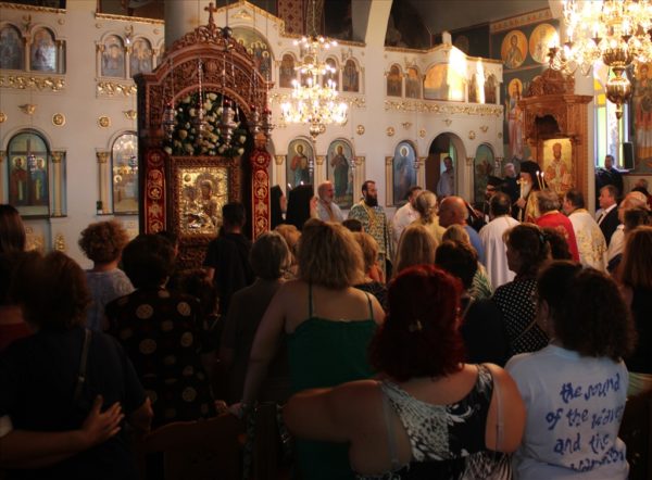 Πλήθος πιστών συνέρρεε με ευλάβεια στον Ιερό Ναό, προκειμένου να προσκυνήσει την Ιερά Εικόνα της Παναγίας και να λάβει τη χάρη της.