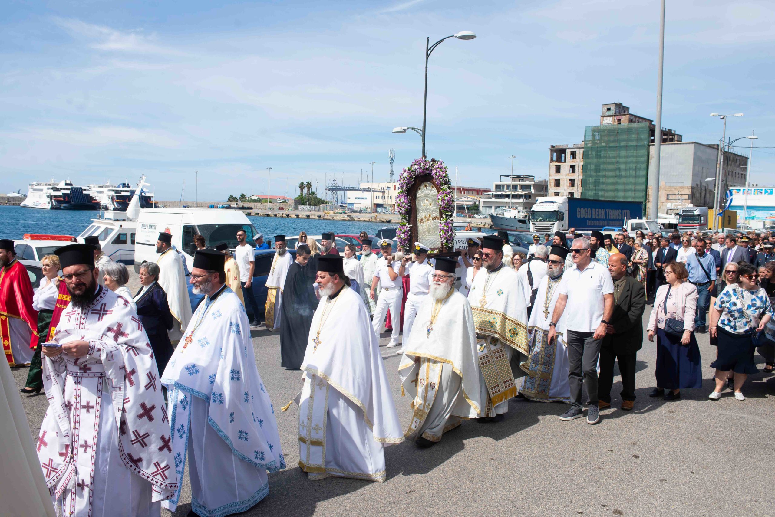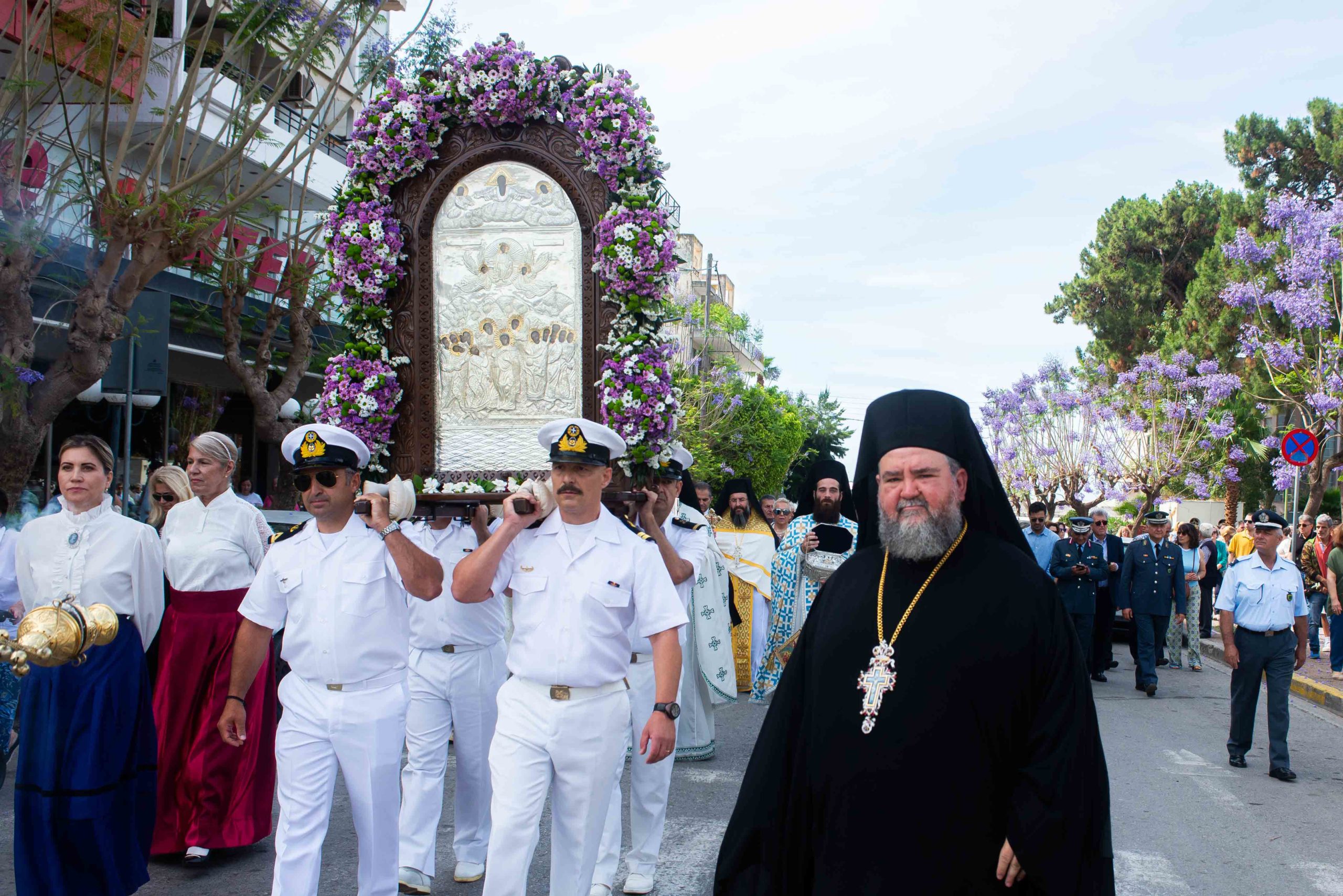 Μετά το πέρας της Θείας Λειτουργίας ακολούθησε η λιτάνευση της Ιεράς Εικόνος, με την συμμετοχή του Δημάρχου Καλαμάτας κ. Αθ. Βασιλόπουλου, του Βουλευτή Μεσσηνίας κ. Περικλή Μαντά, του συνόλου των Αντιδημάρχων και μελών του Δημ. Συμβουλίου Καλαμάτας, της Αντιπεριφερειάρχου Κοινωνικής Μέριμνας κ. Μαρίας Οικονομάκου, του Γενικού Περιφερειακού Αστυνομικού Διευθυντή Πελοποννήσου Υποστράτηγου κ. Ηλία Αξιοτόπουλου, του Αστυνομικού Διευθυντή Μεσσηνίας κ. Αθ. Χριστόπουλου , του Διοικητή Πυροσβεστικών Υπηρεσιών Μεσσηνίας κ. Κων/νου Γεωργακόπουλου, του Λιμενάρχη Καλαμάτας κ. Δημ. Νέζη, ενώ την λιτάνευση συνόδευσε η Φιλαρμονική του Δήμου Καλαμάτας και άνδρες του Λιμενικού Σώματος οι οποίοι έφεραν επ’ ώμων την Ιερά Εικόνα.