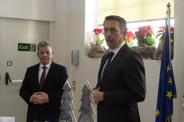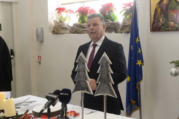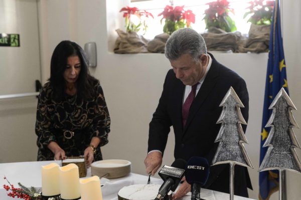 Στη συνέχεια ο Σεβασμιώτατος μετέβη στο Διοικητήριο της Περιφερειακής Ενότητος Μεσσηνίας, όπου και ευλόγησε την βασιλόπιτα της Υπηρεσίας, ευχόμενος τα δέοντα στους εκπροσώπους των Αρχών αλλά και στο υπαλληλικό προσωπικό.