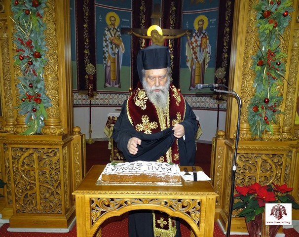 Με την ολοκλήρωση του Εσπερινού ο Σεβασμιώτατος ευλόγησε, ως είθισται, την πρώτη Βασιλόπιτα του νέου έτους. Ακολούθησε η διανομή των κομματιών και η ανταλλαγή ευχών σε χαρμόσυνο κλίμα.