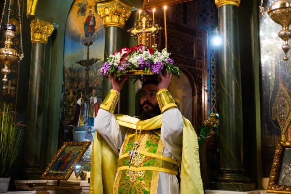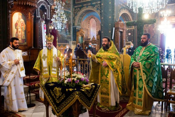 Με θρησκευτική κατάνυξη και ευλάβεια τιμήθηκε η εορτή της Σταυροπροσκυνήσεως στην Ιερά Μητρόπολη Μεσσηνίας. Επίκεντρο του εορτασμού ο Ιστορικός Ιερός Ναός του Αγίου Νικολάου, ο επονομαζόμενος “Φλαρίου”, στο κέντρο της πόλης της Καλαμάτας. Του Όρθρου και της πανηγυρικής Θείας Λειτουργίας προέστη ο Σεβ. Μητροπολίτης Μεσσηνίας κ. Χρυσόστομος, συμπαραστατούμενος από τον Πρωτοσύγκελλο της Ιεράς Μητροπόλεως και Προϊστάμενο του Ναού Αρχιμ. Φίλιππο Χαμαργιά, τον Πρωτ. Γεώργιο Γιαννόπουλο και τον Διάκονο Θεόφιλο Κυριάκο. Τα Ιερά Αναλόγια κόσμησαν οι Ιεροψάλτες του Ναού, μετά των μαθητών αυτών. Παρά τα περιοριστικά μέτρα, ήταν αρκετοί οι πιστοί που με υπομονή και καρτερικότητα συμμετείχαν έξω από τον Ιερό Ναό, τηρώντας τις αποστάσεις και τα μέτρα υγιεινής.