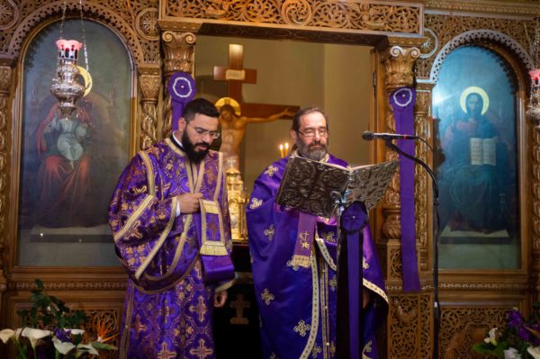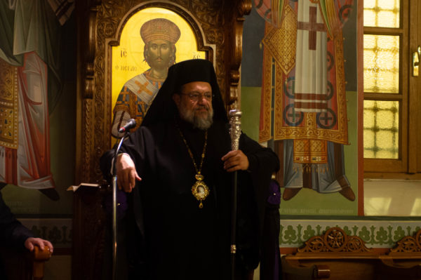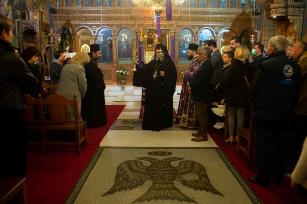 Τον Σεβασμιώτατο πλαισίωσαν ο εφημέριος του Ιερού Ναού Αγίων Κωνσταντίνου και Ελένης Ανδρούσης και Αρχιερατικός Επίτροπος της ομώνυμης Αρχιερατικής Περιφέρειας Πρωτοπρεσβύτερος Παναγιώτης Κρόμπας και ο Διάκονος Θεόφιλος Κυριάκος.