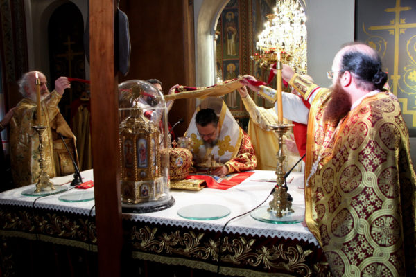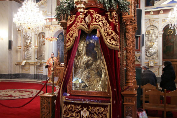 Στη συνέχεια τελέστηκε Παράκληση στην Υπεραγία Θεοτόκο και η θαυματουργός Εικόνα της Παναγίας μεταφέρθηκε από το θρόνο λιτάνευσης αυτής στο μόνιμο θρόνο της.