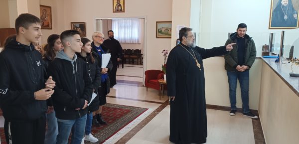 Στη συνέχεια ο Μητροπολίτης ξενάγησε τους μαθητές στις διοικητικές υπηρεσίες της Ιεράς Μητροπόλεως.