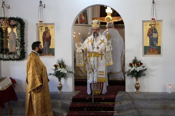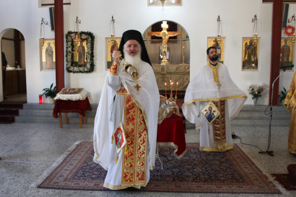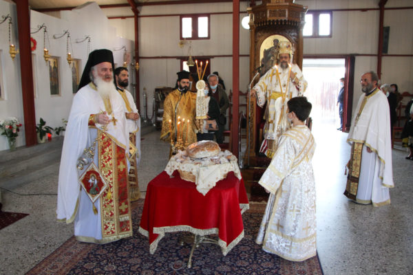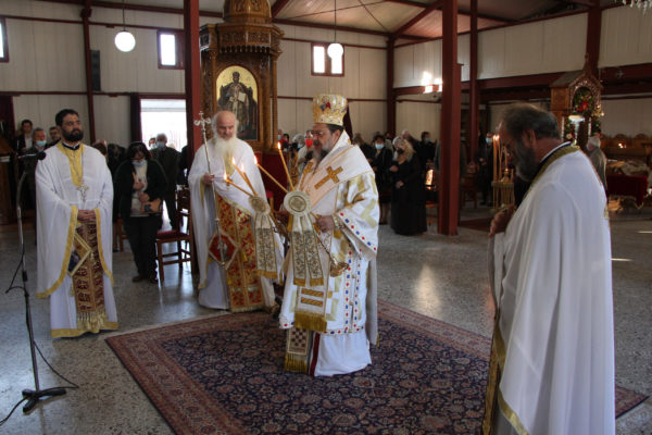 Ο Μητροπολίτης απευθυνόμενος στους πιστούς ευχήθηκε η εορτάζουσα Αγία να χαρίζει υγεία και τη σοφία της σε όλο τον κόσμο, ενώ δεν παρέλειψε να συγχαρεί τον προϊστάμενο του Ναού Πανοσιολ. Αρχιμανδρίτη Ευθύμιο Θεοδωρόπουλο, για το κοπιώδες έργο της ανεγέρσεως του νέου Ιερού Ναού, ο οποίος ανεγείρεται δίπλα από το σημερινό λυόμενο.
