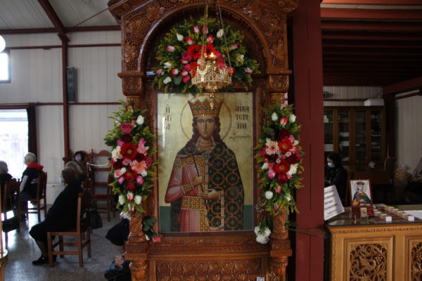 Με λαμπρότητα και τηρουμένων των υγειονομικών μέτρων, εορτάστηκε σήμερα η μνήμη της Αγίας Μεγαλομάρτυρος Αικατερίνης της Πανσόφου, στον πανηγυρίζοντα φερώνυμο Ενοριακό Ιερό Ναό της Καλαμάτας.