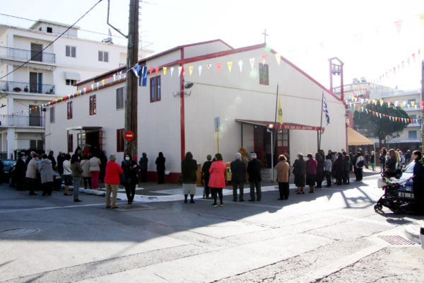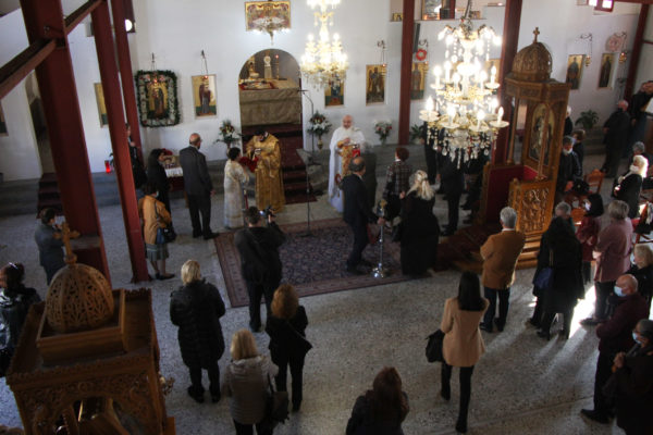 Πλήθος πιστών προσήλθε με ευλάβεια στον Ιερό Ναό προκειμένου να συμμετάσχει στη θεία Λειτουργία και να λάβει τη χάρη της Αγίας.