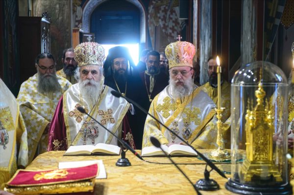 Κατά τον Όρθρο και την Πολυαρχιερατική Θεία Λειτουργία προεξήρχε ο εορτάζων Μητροπολίτης Μεσσηνίας κ. Χρυσόστομος, συλλειτουργούντων των Σεβασμιωτάτων Μητροπολιτών Χαλκίδος κ. Χρυσοστόμου, Θηβών κ. Γεωργίου, Ηλείας κ. Αθανασίου, Ιλίου κ. Αθηναγόρου, Κηφισίας κ. Κυρίλλου, Μαρωνείας κ. Παντελεήμονος, Θεσσαλιώτιδος κ. Τιμοθέου, Μεγάρων κ. Κωνσταντίνου, Σταγών κ. Θεοκλήτου, Θήρας κ. Αμφιλοχίου και του Θεοφιλ. Επισκόπου Ωρεών κ. Φιλοθέου.