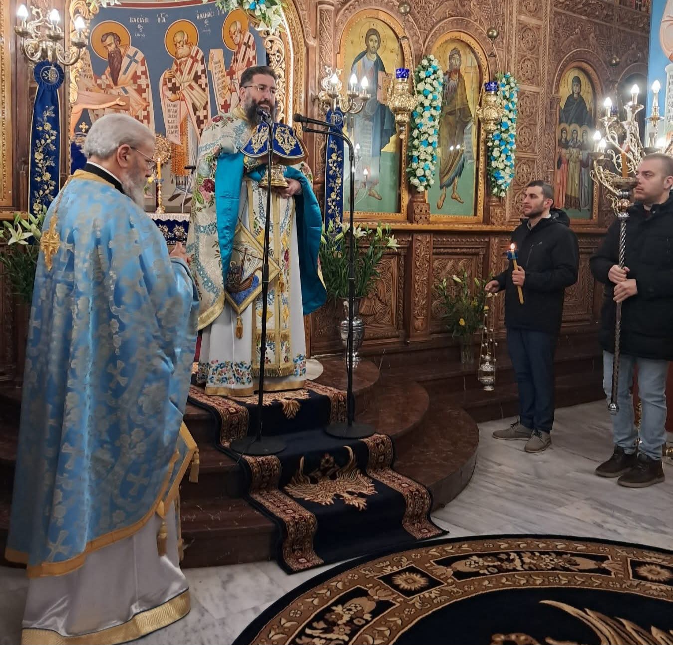 Της Θείας Λειτουργίας προέστη ο Πρωτοσύγκελλος της Ιεράς Μητροπόλεως Μεσσηνίας Αρχιμανδρίτης Φίλιππος Χαμαργιάς, πλαισιωμένος από τον προϊστάμενο του Ναού Αρχιμανδρίτη Χερουβείμ Μεστούση και τον συνεφημέριο του π. Γεώργιο Χαλιώτη.