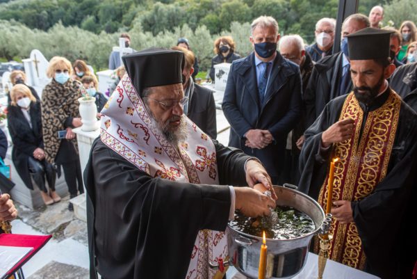 Ο Σεβασμιώτατος, αφού τέλεσε προ της εισόδου τον καθιερωμένο αγιασμό και στην συνέχεια τις ευχές των Θυρανοιξίων, απηύθυνε λόγους πατρικούς προς τους κατοίκους της περιοχής αλλά και λόγους ευγνωμοσύνης και ευχαριστίες προς τον Πρόεδρο της ΤΕΜΕΣ Α.Ε. και ιδιοκτήτη της μεγάλης ξενοδοχειακής μονάδας COSTA NAVARINO κ. Αχιλλέα Κωνσταντακόπουλο, διότι ανέλαβε εξ’ ολοκλήρου την αποκατάσταση του καταστραφέντος από την πυρκαγιά της 15ης Φεβρουαρίου 2021, Κοιμητηριακού Ναού του Αγίου Νικολάου, της Κοινότητας Καρποφόρας Μεσσηνίας.