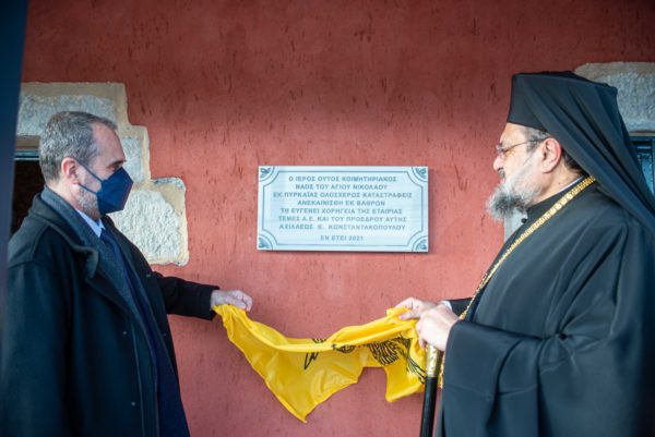 Ως ελάχιστο δείγμα ευγνωμοσύνης και εν είδει ευλογίας προσέφερε μια ασημένια εικόνα του Αγίου Νικολάου στον παρευρισκόμενο εκπρόσωπο του κ. Κωνσταντακόπουλου, κ. Δημήτριο Φρυδά, Διευθύνοντα Σύμβουλο της ΤΕΜΕΣ Α.Ε., για τις από μέρους του ενέργειες και την συμβολή του στο έργο.