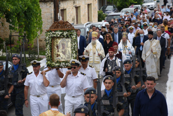 Στη συνέχεια πραγματοποιήθηκε λιτάνευση της Χαριτοβρύτου Εικόνος της Παναγίας στα γραφικά σοκάκια της κωμόπολης.