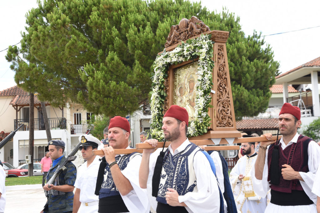 Στη συνέχεια πραγματοποιήθηκε λιτάνευση της Χαριτοβρύτου Εικόνος της Παναγίας στα γραφικά σοκάκια της κωμόπολης.