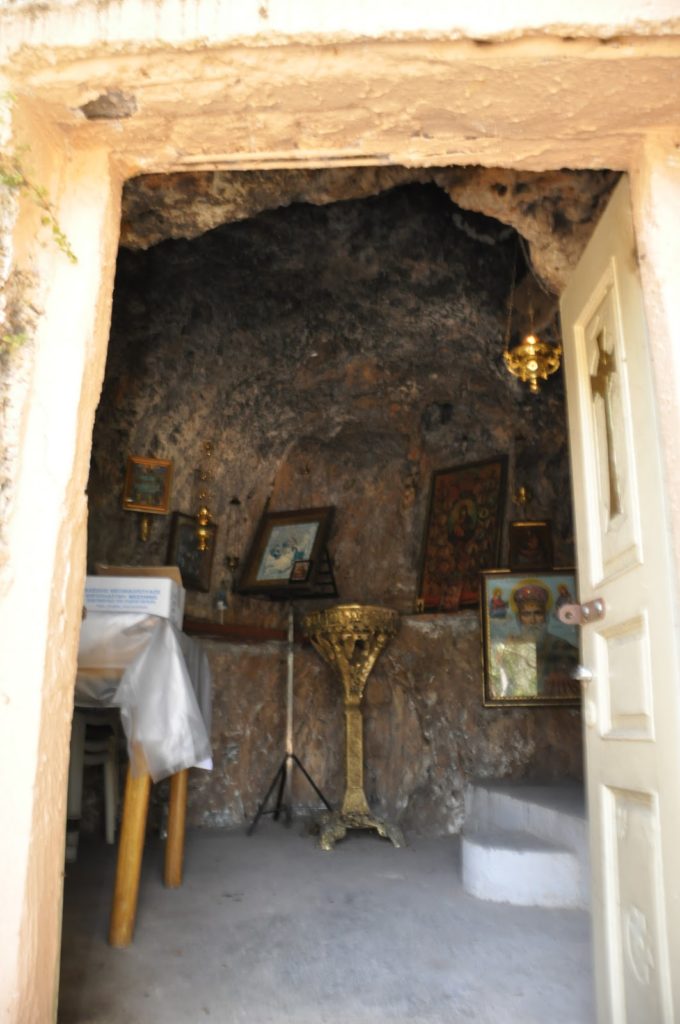 Η σπηλίτσα βρίσκεται σε ύψος 8 – 10 μ. από τη βάση του βράχου. Τα παλιότερα χρόνια η ανάβαση στο μικρό ναό, γινόταν από μία σκάλα που έγινε τελευταία τσιμεντένια. Στη βάση του βράχου και ακριβώς κάτω από το ιερό, αναβλύζει πηγή με αρκετό και δροσερό νερό, που η πίστη και η ευλάβεια των προσκυνητών το μετέτρεψε σε ιαματικό αγίασμα, που «θεραπεύει» τις αρρώστιες και φέρνει… «γούρι».
