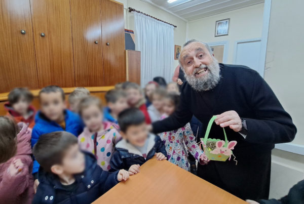 Τα παιδιά τα οποία συνόδευαν η Διευθύντρια Ευθυμία Καλογεροπούλου και βρεφονηπιαγωγοί του Σταθμού, προσέφεραν στο προσωπικό της Μητρόπολης πασχαλινές τους δημιουργίες και ευχήθηκαν ενόψει των εορτών του Πάσχα.
