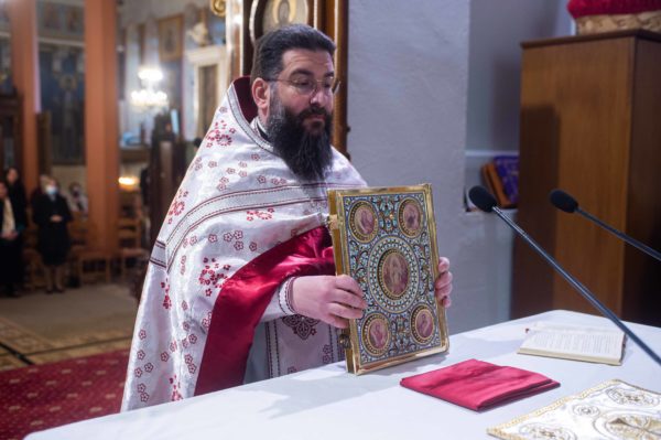Στη συνεχεία ευχαρίστησε τον Πρωτοσύγκελλο της Ιεράς Μητρόπολης για την διακριτική και αληθινή αγάπη του, όπως χαρακτηριστικά είπε, αλλά και για την τιμή που του έκανε να του προσφέρει την στολή με την οποία είχε χειροτονηθεί και ο ίδιος πριν πολλά χρόνια και την οποία φόρεσε και ο ίδιος κατά την ευλογημένη αυτή ημέρα. Κατόπιν ευχαρίστησε τους εφημερίους του Ι. Ν. Αναστάσεως του Χριστού και ιδιαιτέρως τον π. Αλέξιο Αρώνη για τις διδαχές και τις συμβουλές του, αλλά και τους εφημερίους του Ιερού Ναού Αναλήψεως, όπου έλαβε χώρα η χειροτονία, για την αβραμιαία φιλοξενία.