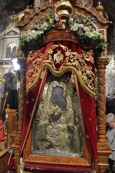 Μετά το πέρας της Θείας Λειτουργίας, πραγματοποιήθηκε πάνδημη λιτάνευση της θαυματουργού Εικόνας της Παναγίας στις κεντρικές οδούς της πόλης, όπου υπομονετικά περίμεναν χιλιάδες πιστών για να προϋπαντήσουν τη Θεομήτορα.