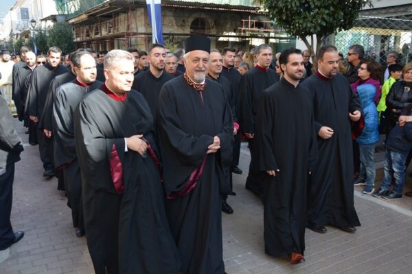 Στον Όρθρο και την πανηγυρική Πολυαρχιερατική Θεία Λειτουργία προέστη ο Σεβ. Μητροπολίτης Φιλαδελφείας κ. Μελίτων, συλλειτουργούντων των Σεβ. Μητροπολιτών Ιλίου κ. Αθηναγόρα, Ζακύνθου κ. Διονυσίου, Ιερισσού κ. Θεοκλήτου, Φθιώτιδος κ. Συμεών, Σιατίστης κ. Αθανασίου, Λήμνου κ. Ιεροθέου, του Θεοφιλ. Επισκόπου Ωρεών κ. Φιλοθέου κα του Σεβ. Μητροπολίτη Μεσσηνίας κ. Χρυσοστόμου.